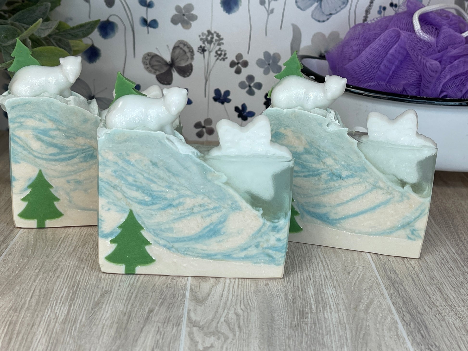 Scented in Feeling Frosty, Cool Spearmint and Peppermint top and middle notes blended with sweet vanilla and cotton candy type bottom notes.